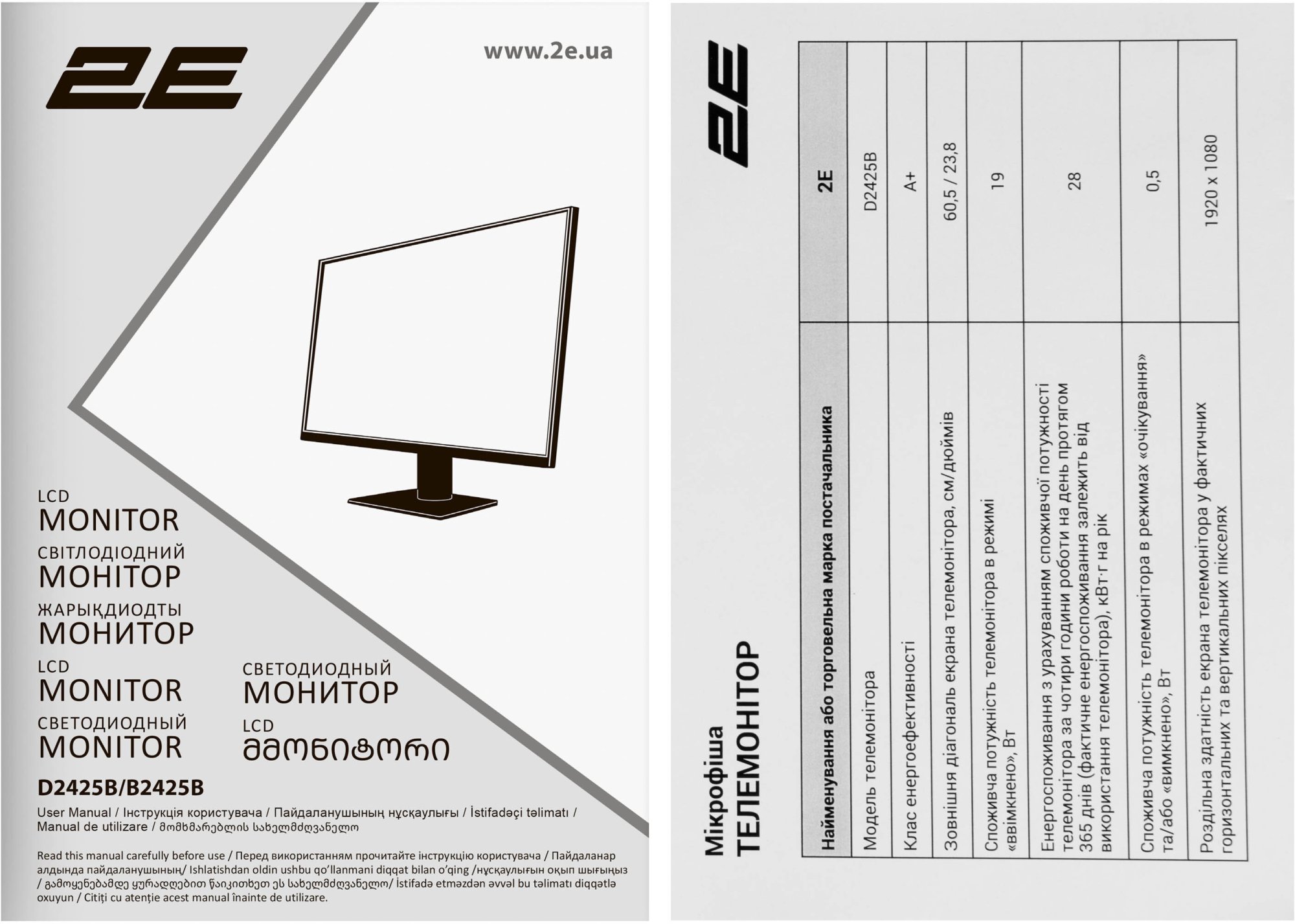 2E D2425B — це практичний, функціональний монітор, який поєднує якісну IPS-матрицю, плавну 100-герцеву розгортку, підтримку FreeSync та вбудовані динаміки в одному доступному пристрої. Він однаково добре підходить для офісної роботи, навчання та домашнього мультимедіа, пропонуючи достатній набір можливостей без зайвої переплати.