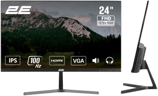 Монітор 2E D2425B з діагоналлю 23,8 дюйма — це збалансоване рішення для щоденної роботи, навчання та мультимедійного дозвілля. Лаконічний чорний корпус із тонкими рамками органічно вписується в будь-який робочий простір, не відвертаючи від головного — якості зображення.