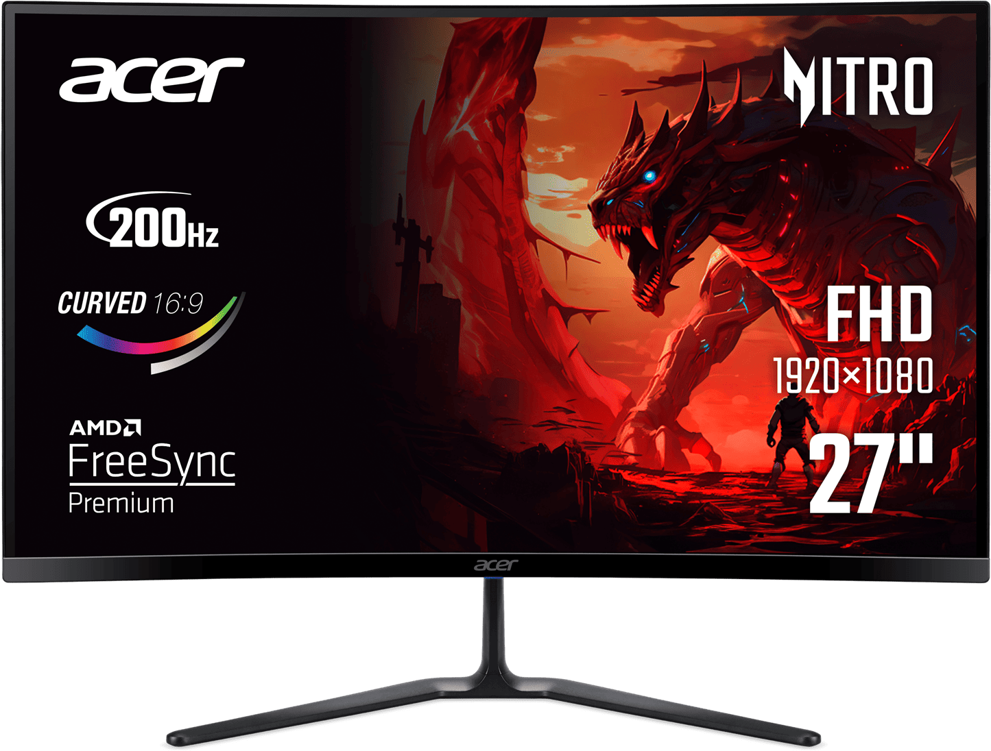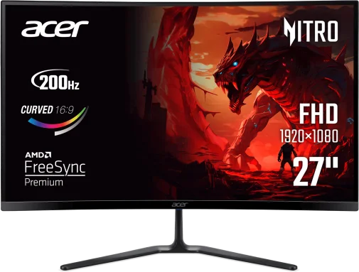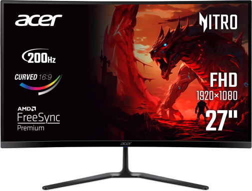 Монітор Acer Nitro ED270X0biip — це геймерський пристрій із серії Nitro ED0, призначений для динамічних ігор та повсякденного використання. З діагоналлю 27 дюймів і вигнутою геометрією екрана з радіусом кривизни 1500R він створює ефект повного занурення, а співвідношення сторін 16:9 робить його універсальним для будь-якого контенту.