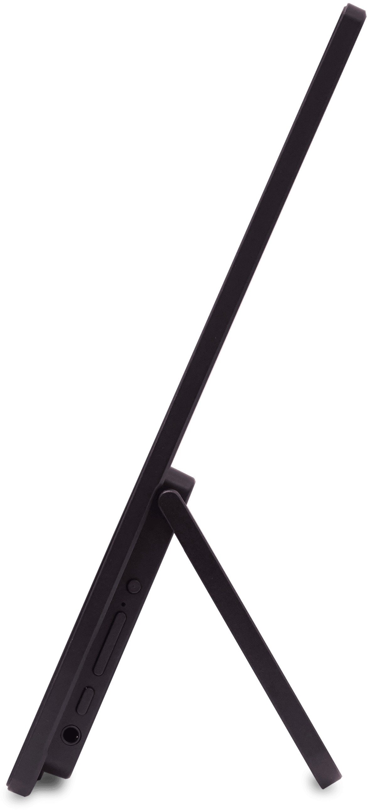 Єдине доступне регулювання — нахил екрана, проте завдяки компактним розмірам та невеликій вазі монітор ідеально підходить для мобільного використання: як другий екран для ноутбука, портативна робоча станція чи розширення робочого простору в подорожах.