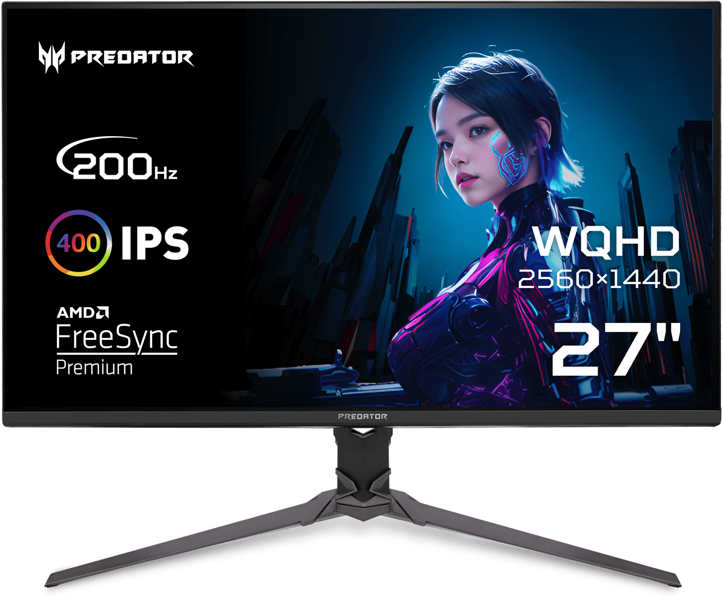 Цей геймерський монітор Acer Predator XB273UX1bmiiprx з діагоналлю точно 27 дюймів і класичним співвідношенням сторін 16:9 оснащений якісною IPS-матрицею з роздільною здатністю 2560x1440 пікселів (Quad HD). Плоский екран має матове покриття, яке ефективно бореться з відблисками, а технологія ZeroFrame забезпечує практично безрамковий дизайн з трьох сторін, що ідеально виглядає як в одиночному використанні, так і в мультимоніторних конфігураціях.