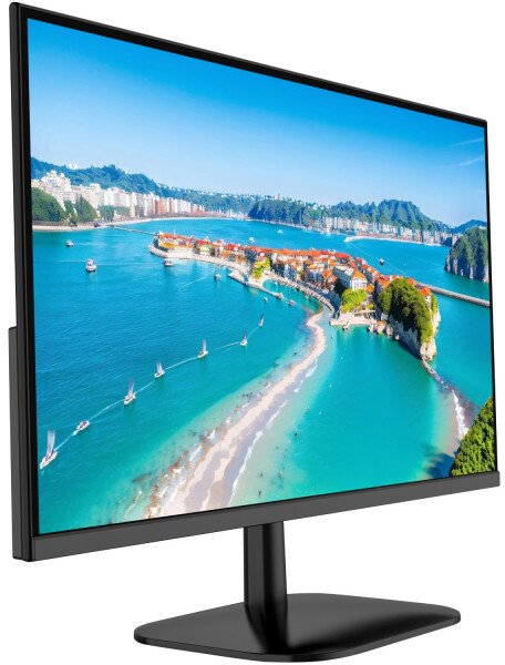 Екран із діагоналлю 23,8" та роздільною здатністю 1920×1080 (Full HD) забезпечує чітке та деталізоване зображення, а співвідношення сторін 16:9 робить його зручним для роботи з документами, перегляду відео та багатозадачності. VA-матриця з високою статичною контрастністю 3000:1 передає глибокі чорні відтінки та насичені кольори, що особливо помітно під час перегляду фільмів або роботи з графікою.