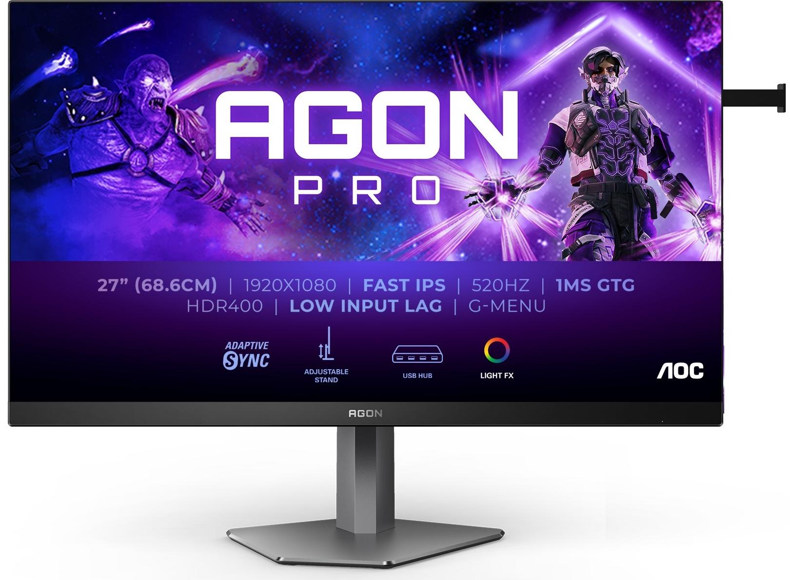 Монітор AOC AGON AG276FK — це 27-дюймовий ігровий дисплей з роздільною здатністю Full HD 1920x1080, створений спеціально для кіберспорту. Завдяки панелі Fast IPS та вражаючій частоті оновлення 520 Гц він забезпечує надзвичайно плавне зображення, майже повністю усуваючи розмиття руху. Час відгуку GtG становить лише 1 мс, що робить кожну дію миттєвою та точною, а сертифікація VESA Certified DisplayHDR 400 додає насичених кольорів і високого контрасту.