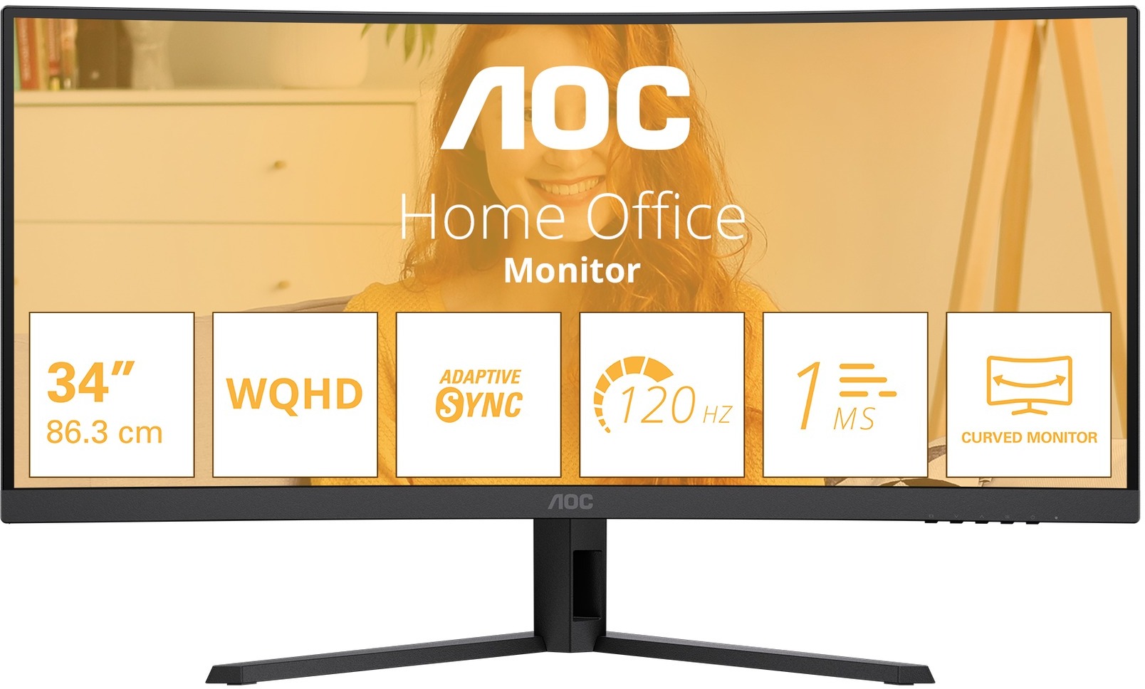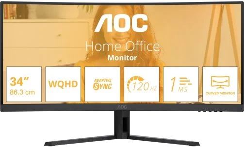 AOC CU34B3E — це 34-дюймовий ультраширокий вигнутий монітор із роздільною здатністю WQHD (3440×1440) та співвідношенням сторін 21:9, який стане відмінним вибором для тих, хто шукає монітор для роботи, ігор, багатозадачності та мультимедійних розваг. Завдяки широкому формату екрана відпадає необхідність у другому моніторі: на одному екрані комфортно розміщується кілька вікон або програм одночасно, що особливо оцінять ті, хто працює з таблицями, кодом, монтажем відео або браузером із безліччю вкладок.