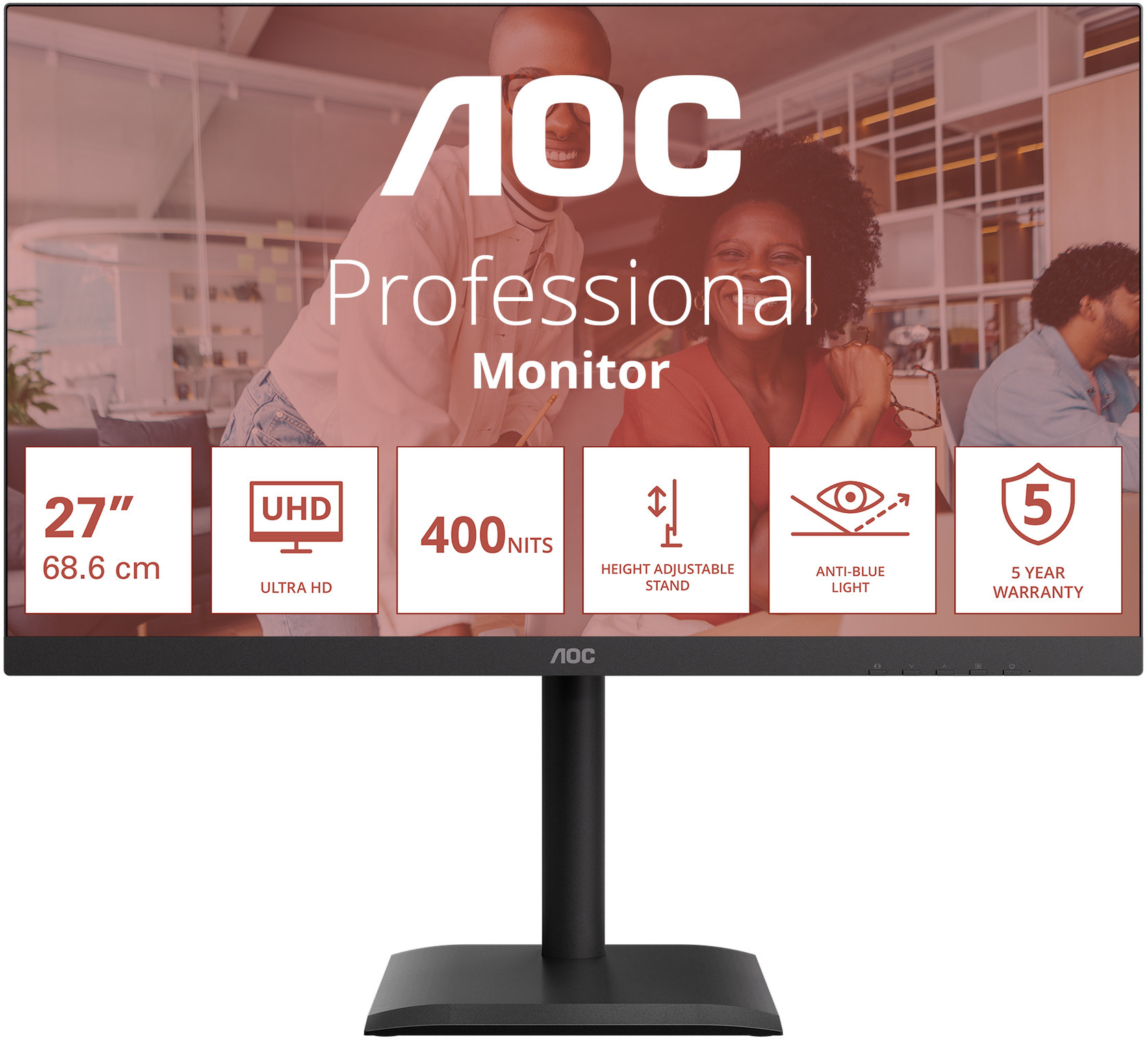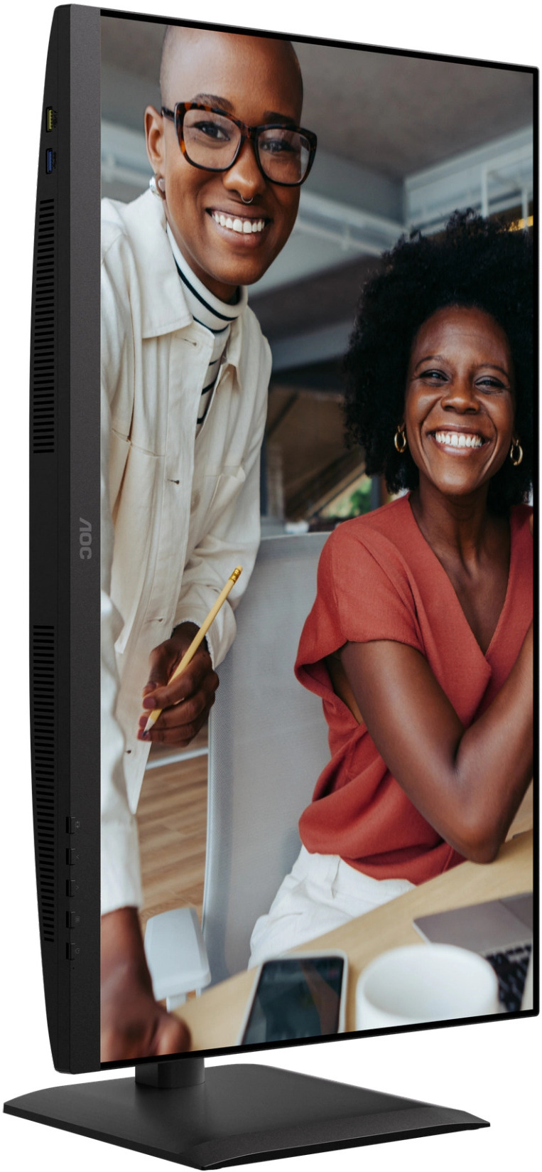 AOC U27E4CV — це 4K-монітор для продуктивної роботи, який об'єднав у собі все необхідне для сучасного гібридного офісу: чітку IPS-панель з яскравістю 400 ніт, повноцінну dok-станцію з USB-C 90 Вт PD і RJ-45, гнучку ергономіку та апаратний захист зору. Тривала гарантія і висока екологічна сертифікація роблять його особливо привабливим для корпоративного сегмента.