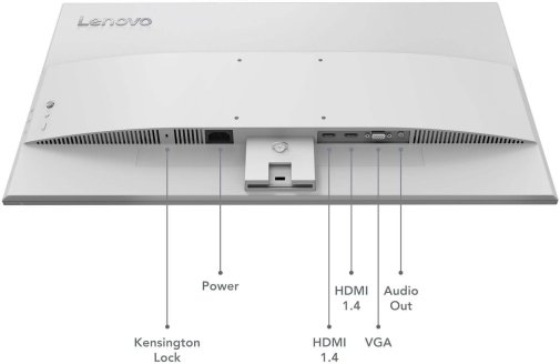Lenovo L27-4C має все необхідне для зручного підключення — порти HDMI та VGA, які дозволяють легко приєднати комп’ютер, ноутбук чи інші джерела сигналу без потреби у перехідниках. Це робить монітор універсальним вибором як для сучасних, так і для більш старих систем.