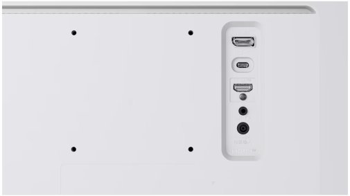 Зовні монітор виглядає стримано та сучасно: білий корпус, три безрамкові сторони та витончена L-подібна підставка білого кольору з квадратною основою. Передбачене регулювання нахилу від -5° до +15°, відстібна підставка та підтримка кріплення VESA 100×100 мм для монтажу на стіну.
