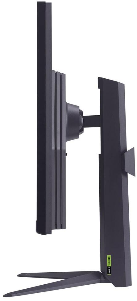 Монітор оснащений антибліковим покриттям, практично безрамковим дизайном з трьох сторін та регульованою основою, що підтримує нахил від -5° до +15°, поворот, а також регулювання висоти до 110 мм. Така ергономіка дозволяє оптимально налаштувати екран під будь-який стиль гри та розташування на робочому столі.