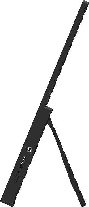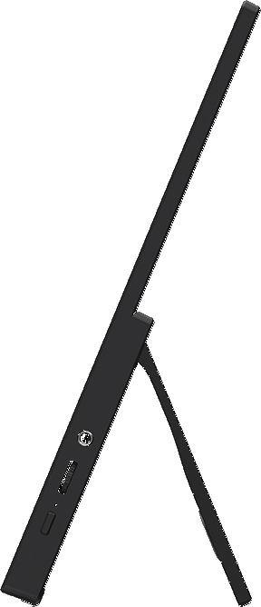 Вага лише 780 грамів робить цей монітор одним із найлегших у своєму класі — він легко поміщається у рюкзак разом із ноутбуком. Вбудована регульована підставка дає змогу виставити зручний кут нахилу. Крім того, монітор підтримує кріплення на штатив (¼") і настінне кріплення VESA 75 мм — тобто його можна розмістити практично будь-де: на столі, стіні чи тримачі для камери. Вбудовані динаміки дозволяють слухати аудіо без навушників.