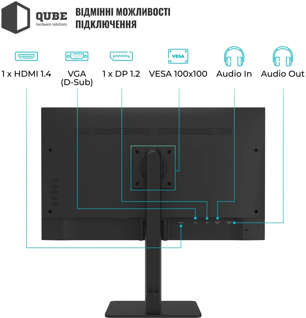 Вбудовані динаміки та широкий набір інтерфейсів, включаючи DisplayPort 1.2, HDMI 1.4, VGA, аудіовхід та вихід, роблять цю модель універсальною та зручною у використанні як вдома, так і в офісі.