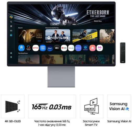 Новий 32-дюймовий Smart-монітор LS32FM902SIXUA від Samsung поєднує стиль, функціональність і передові технології зі штучним інтелектом. Завдяки Samsung Vision AI цей монітор ідеально підходить для роботи, розваг і геймінгу, забезпечуючи миттєвий доступ до стримінгового контенту та розумного керування пристроями.