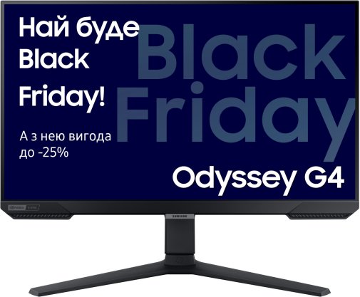 Samsung Odyssey G4 LS25BG400EIXCI — ігровий монітор для занурення в сюжет улюбленої гри. Ви зможете побачити віртуальні світи у новій якості та відпочивати за цим монітором.