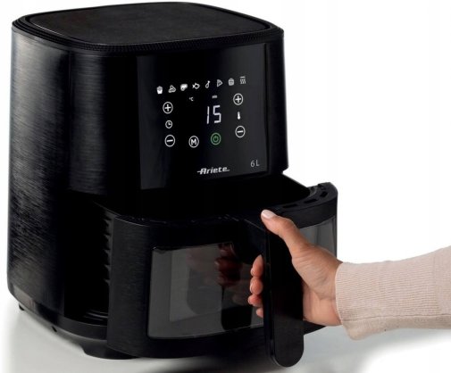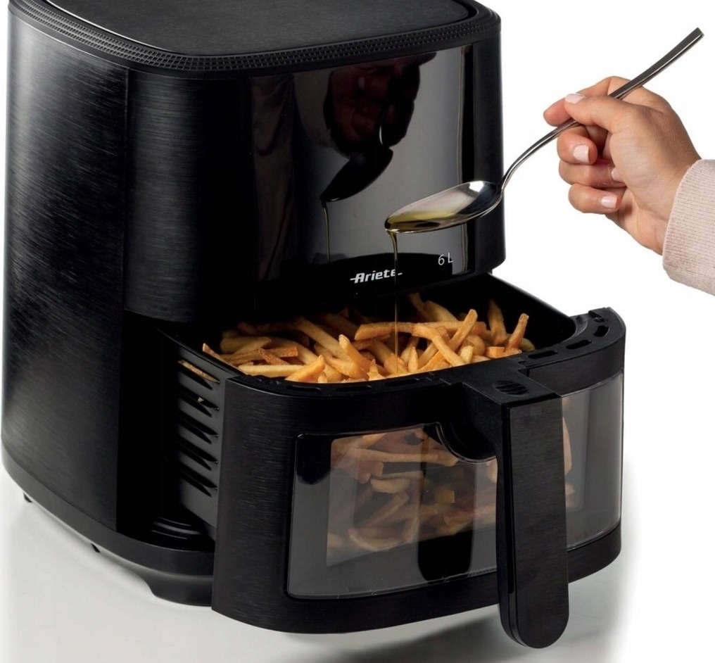 Ariete 4626 BK дозволяє смажити без запахів у будинку: високотемпературне повітря циркулює всередині фритюрниці, швидко та рівномірно готуючи продукти, не виділяючи дим чи характерний запах смаження, що часто трапляється при традиційній олійній фритюрниці.