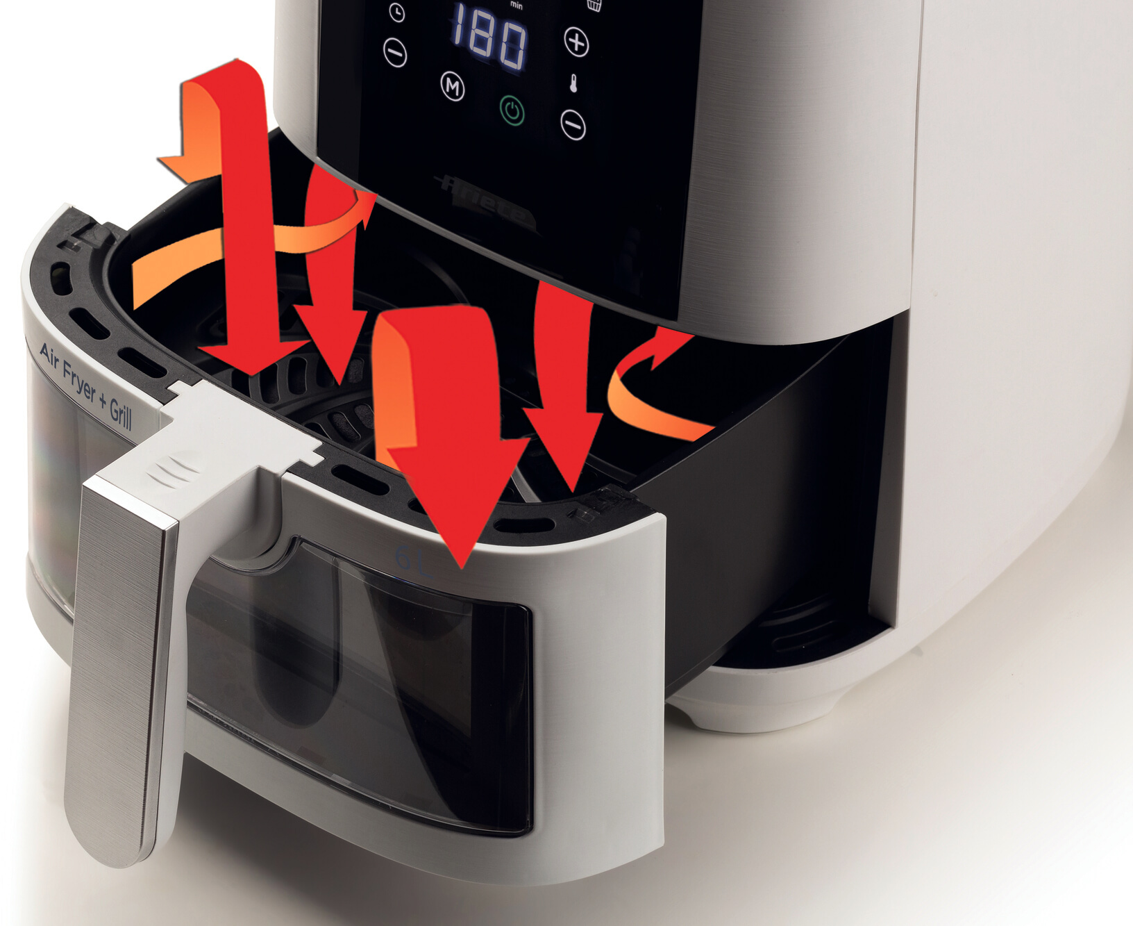 У серці Ariete 4626 працює технологія циркуляції гарячого повітря 360°, яке рівномірно розподіляється всередині камери приготування при температурі від 35°C до 200°C. Саме завдяки цьому страви отримують апетитну хрустку скоринку зовні та залишаються ніжними всередині, без надлишку жиру й без шкоди для смаку. Такий спосіб приготування робить їжу легшою для травлення та менш калорійною, що особливо важливо для здорового харчування всієї родини.
