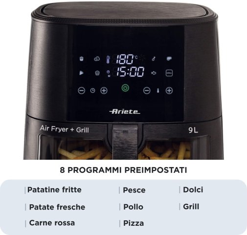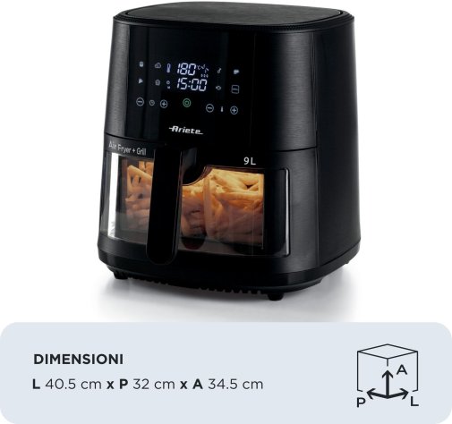 Ariete 4630 — це багатофункціональне рішення для легшого та здоровішого смаження, яке відкриває широкі можливості для приготування улюблених страв: від хрусткої картоплі фрі до риби, овочів, панірованих закусок і навіть солодких рецептів. Вона поєднує в собі місткість, зручне керування та сучасну технологію приготування без зайвого жиру, роблячи кожен прийом їжі смачним і кориснішим.