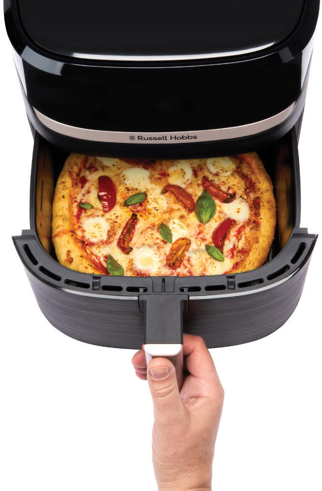 Мультипіч Russell Hobbs Satisfry Air 27630-56 — це універсальна аерофритюрниця з чашею об’ємом 8,3 л, яка дозволяє одночасно готувати велику курку, порцію картоплі фрі або улюблену випічку, що робить її ідеальною для родини або компанії друзів. Завдяки потужності 1800 Вт та 9 автоматичним програмам (Картопля фрі, Стейк, Риба, Овочі, Піца, Курка, Випічка, Сушіння та Функція розігріву) прилад швидко і точно готує різноманітні страви.