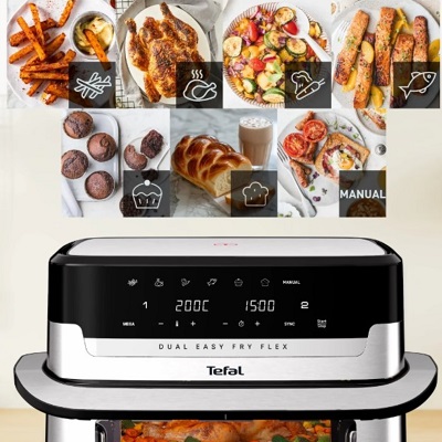 Мультипіч Tefal Dual Easy Fry Flex — це свобода вибору, зручність і велика місткість в одному сучасному рішенні для вашої кухні.