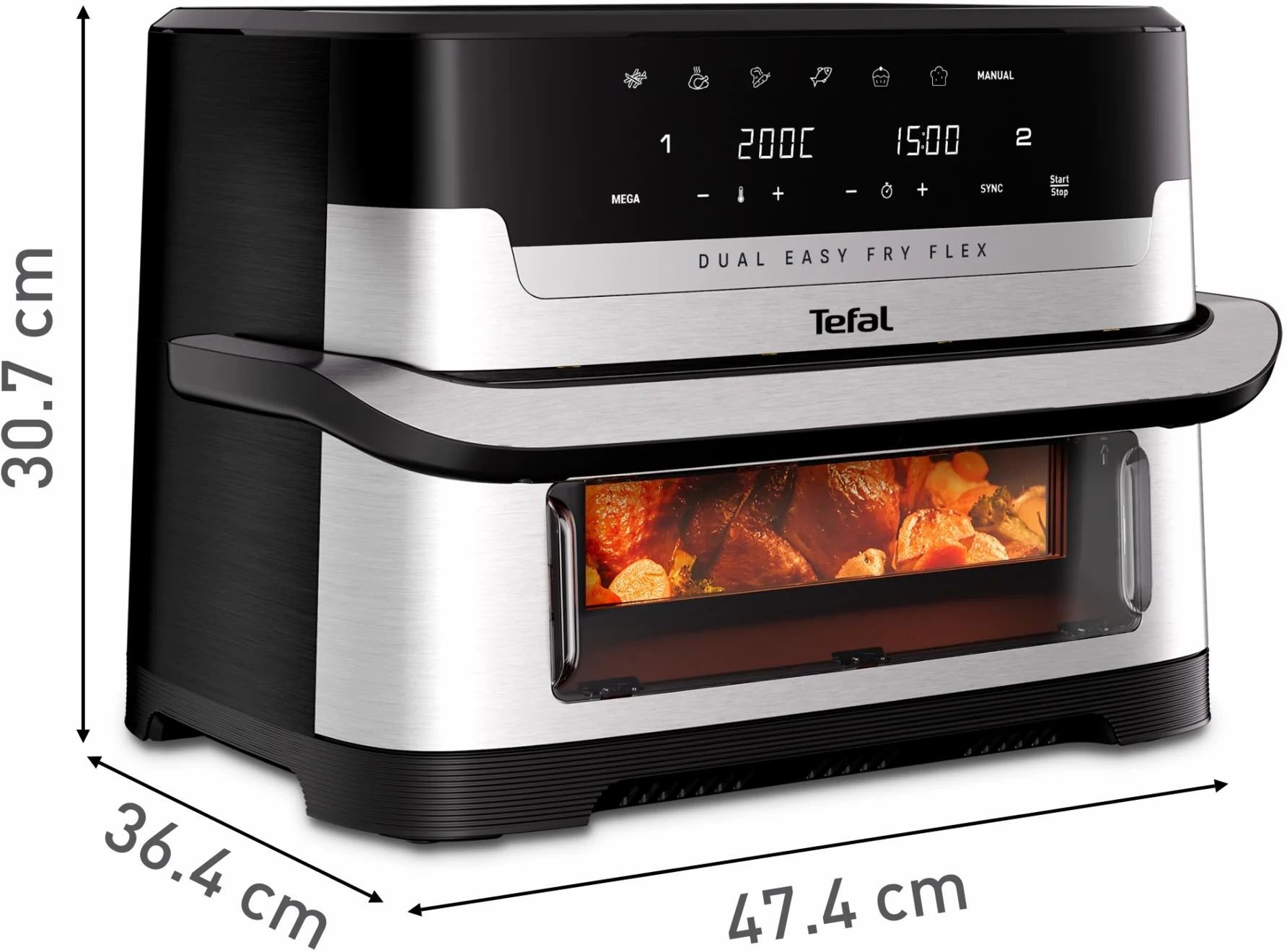 У режимі GiantZone на 9 л ви зможете приготувати запіканки, велику порцію картоплі фрі або навіть дві цілі курки одночасно — об’єму вистачить на всіх. А коли потрібно приготувати різні страви паралельно, працюють дві окремі нагрівальні зони, які легко синхронізуються, щоб усе було готове одночасно. Роздільник FlexCook встановлюється та знімається буквально одним кліком, а сам його можна мити в посудомийній машині.