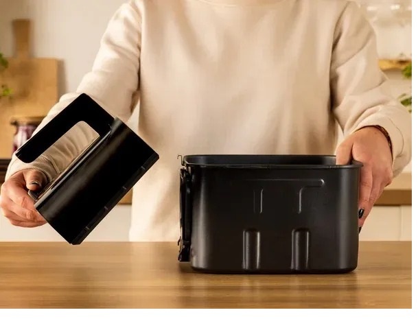 Зручність використання забезпечують знімна передня панель та антипригарна решітка з піддоном для жиру, що спрощує миття та догляд. Кришка для зберігання перетворює мультипіч на контейнер для холодильника, а оглядове вікно дозволяє контролювати процес приготування від початку до хрусткого фінішу.