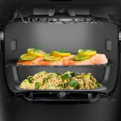Інноваційна технологія Actifry одночасно перемішує та смажить інгредієнти, забезпечуючи рівномірно пропечений, хрусткий і апетитний результат день за днем. Багатошаровий аксесуар дозволяє готувати повноцінну страву за один раз, поєднуючи різні інгредієнти, наприклад, рибу з гарніром, без змішування смаків. А чаша об’ємом 6 літрів ідеально підходить для приготування до шести порцій, що робить мультипіч оптимальним вибором як для буденної вечері, так і для святкових подій із гостями.