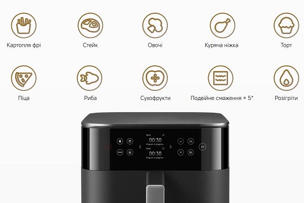 Xiaomi Smart Double Stack Air Fryer поєднує компактність, високу продуктивність, інтелектуальні функції та простоту догляду, перетворюючи приготування їжі на швидкий, зручний і результативний процес.