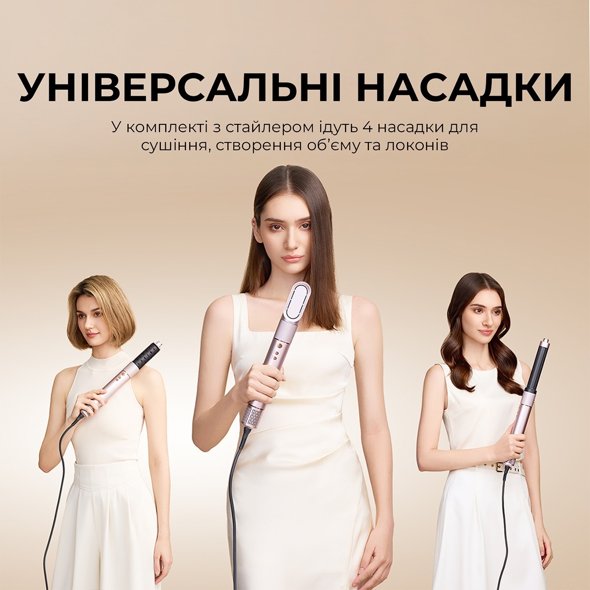 Корпус мультистайлера став надзвичайно зручним — завдяки компактному цифровому двигуну його діаметр зменшений до 4,2 см, а вага — до всього 260 г, тому рука не втомлюється навіть під час тривалого укладання. Легкий та тонкий формфактор робить HF9 ідеальним для щоденного використання.