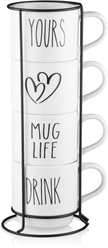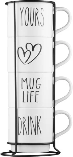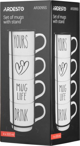 Набір чашок на підставці ARDESTO – це ліпший вибір для всіх, хто цінує красу та практичність. У наборі 4 оригінальні та зручні чашки білого кольору, які доповнено написом. Посуд виготовлено з кераміки – екологічного, міцного та довговічного матеріалу, який забезпечить тривалий термін слугування. Чашки об’ємом 320 мл, діаметром 9,2 см і висотою 8,5 см стануть в пригоді для подавання як чаю, так і кави. Вироби можна використовувати в мікрохвильовій печі та мити в посудомийній машині. Підставка виготовлена з металу, – це зручне та стильне рішення для організації простору, з нею улюблені чашки завжди будуть напохваті. Набір буде вдалим подарунком для близьких і друзів.