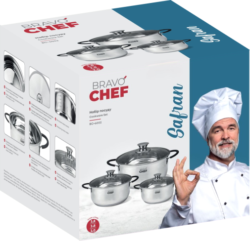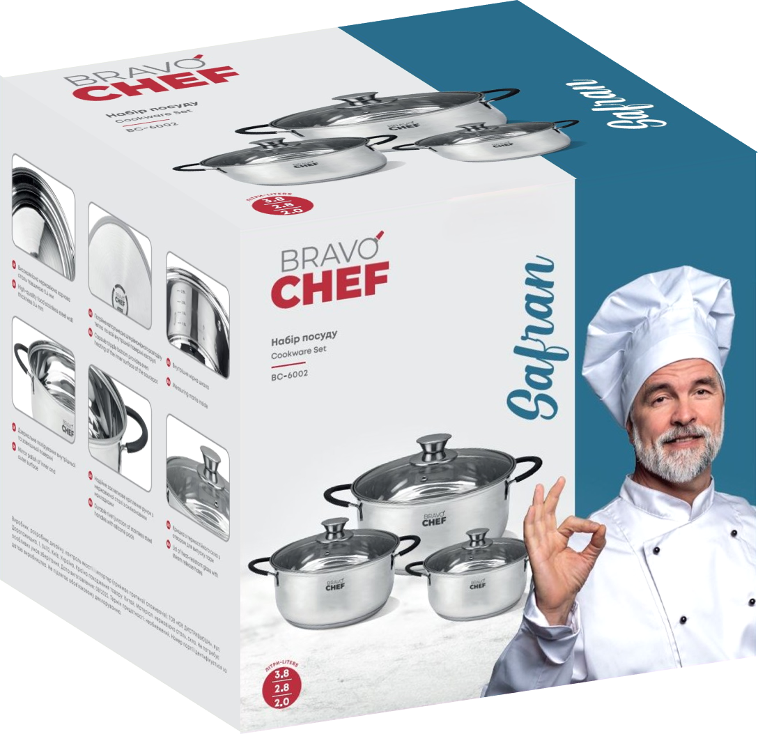 BRAVO CHEF – це посуд, який дає безмежні можливості втілити будь-які вишукані ідеї щодо приготування страв на власній кухні, відчути себе справжнім Шеф-кухарем і подарувати собі та рідним незабутні позитивні емоції та смак життя.