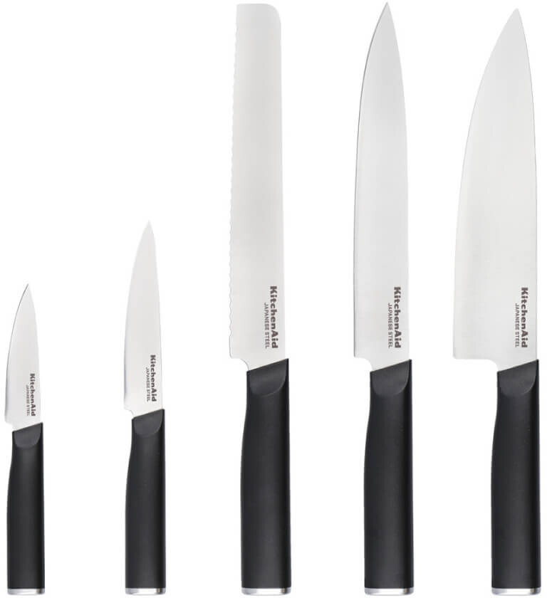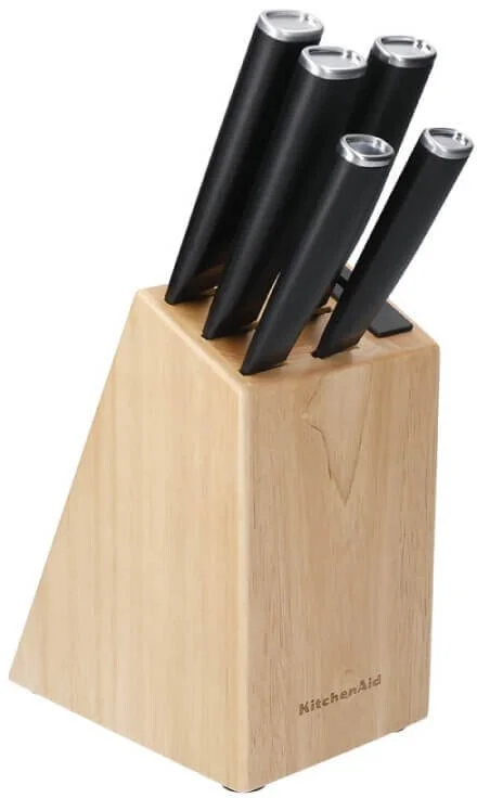 Опис Набір ножів з підставкою KitchenAid Classic, 5 предметів і точило (KE5PSTANOBG).
