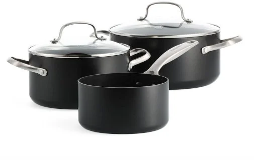 Посуд GreenPan з колекції Copenhagen має дуже велику поверхню та вирізняється міцністю завдяки використанню загартованого алюмінію. Витончений дизайн і матові ручки з нержавіючої сталі надають цій колекції мінімалістичний вигляд.
