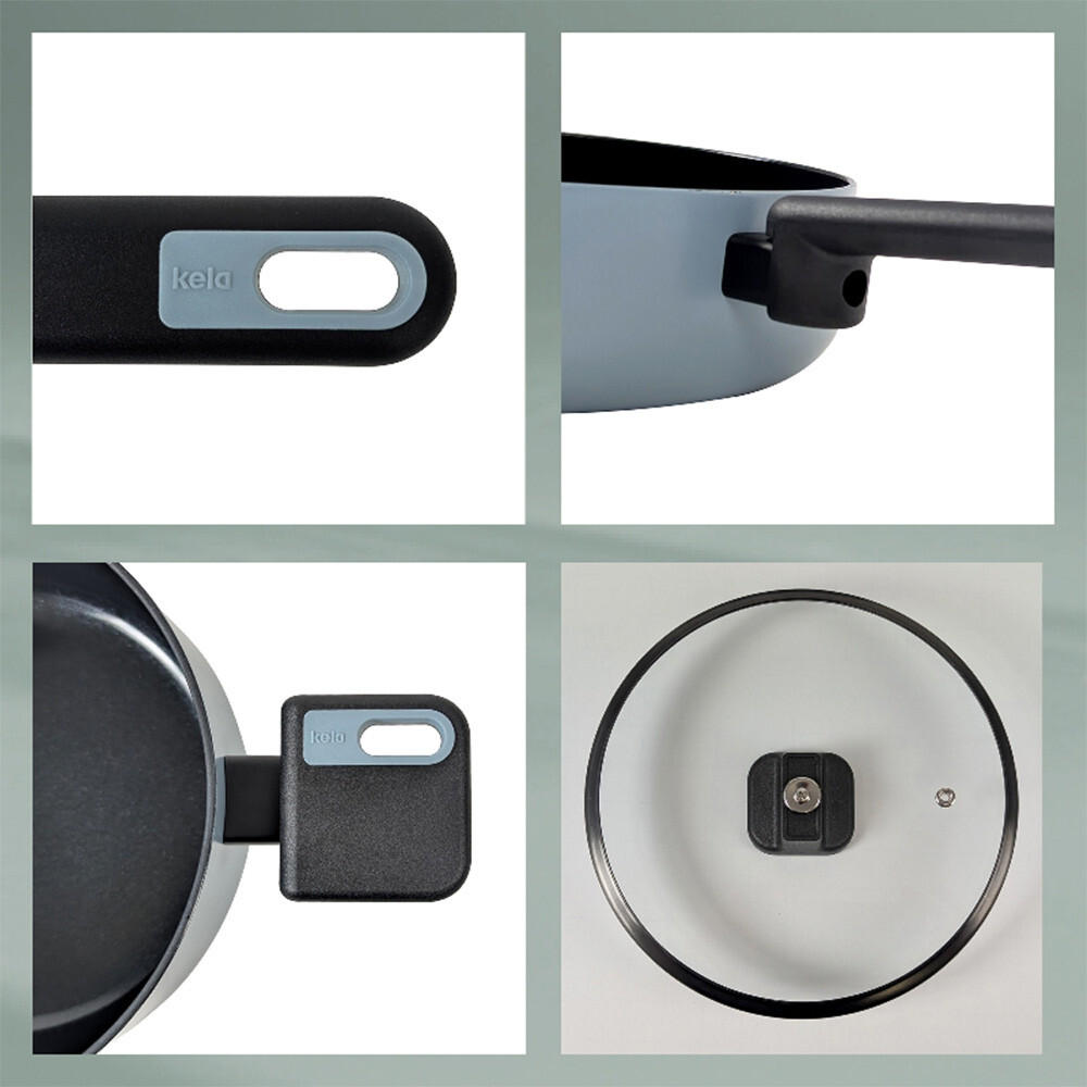 Набір посуду KELA Mira у вишуканому димчасто-блакитному кольорі – це гармонійне поєднання витонченого дизайну, бездоганної якості та функціональності. Такий комплект стане не тільки практичним рішенням для повсякденного приготування, але й стильним акцентом на вашій кухні. Його естетика натхненна спокоєм та чистотою скандинавського стилю, що робить кожен виріб не просто утилітарним предметом, а елементом домашнього затишку та комфорту