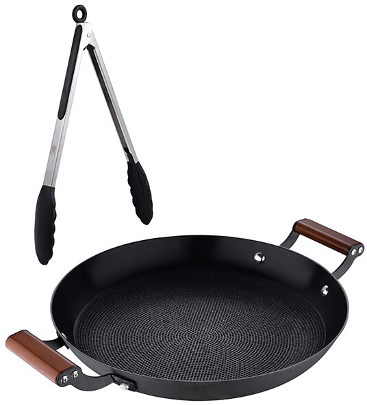 Розміри 32x38x7 см, з корисною глибиною, що дозволяє помістити значну кількість їжі. Кругла форма контейнера означає, що дрібні інгредієнти та рідини можуть вільно переміщатися по всій поверхні, не переливаючись через краї. Ручки з обох боків гриля забезпечують краще захоплення та маневровість. Вони також забезпечують баланс і контроль ваги, необхідні при транспортуванні великої кількості їжі.