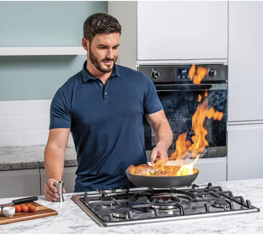 - Сковорода 24 см підходить для обсмаження овочів, м’яса чи млинців. Для конфорки 17,75 см.