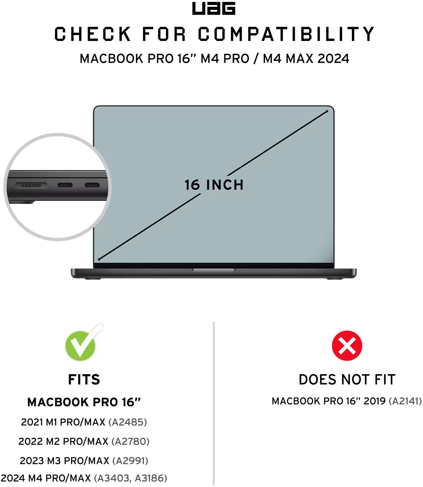 Чохол від відомого виробника UAG для Apple Macbook Pro 16" M3/M4 Max/ProM5 Max/Pro. Виріб захистить гаджет на 360 градусів від подряпин, потертостей та забруднень. Виготовлений аксесуар з ультрапоглинаючої композитної конструкції, яка зможе уберегти девайс під час перевезення. Аксесуар розроблений відповідно до військових стандартів MIL STD 810G 516.6.