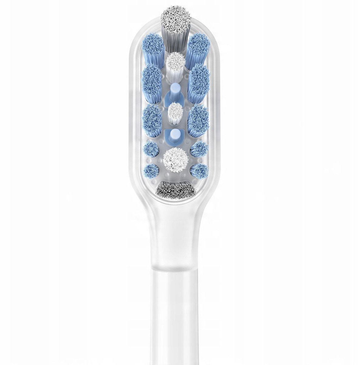 У конструкції насадки використовуються надтонкі, надм’які щетинки з діамантовою обробкою, які легко проникають глибоко між зубами та вздовж лінії ясен. Вони ефективно видаляють зубний наліт навіть у важкодоступних зонах, не травмуючи ясна й не викликаючи подразнення. Завдяки такому балансу жорсткості та гнучкості чищення залишається максимально делікатним, але результативним.