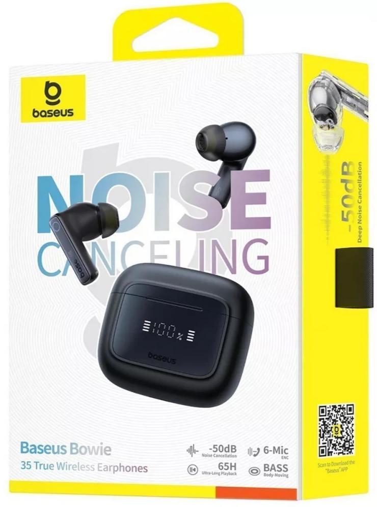 Автономність Baseus Bowie 35 вражає: до 8 годин роботи без шумопоглинання та до 6 годин із увімкненим ANC. Кейс із батареєю на 800 мАг значно подовжує час роботи, а зарядка через USB Type-C забезпечує швидке відновлення енергії. Кожен навушник має акумулятор на 45 мАг, що гарантує стабільну роботу протягом дня.