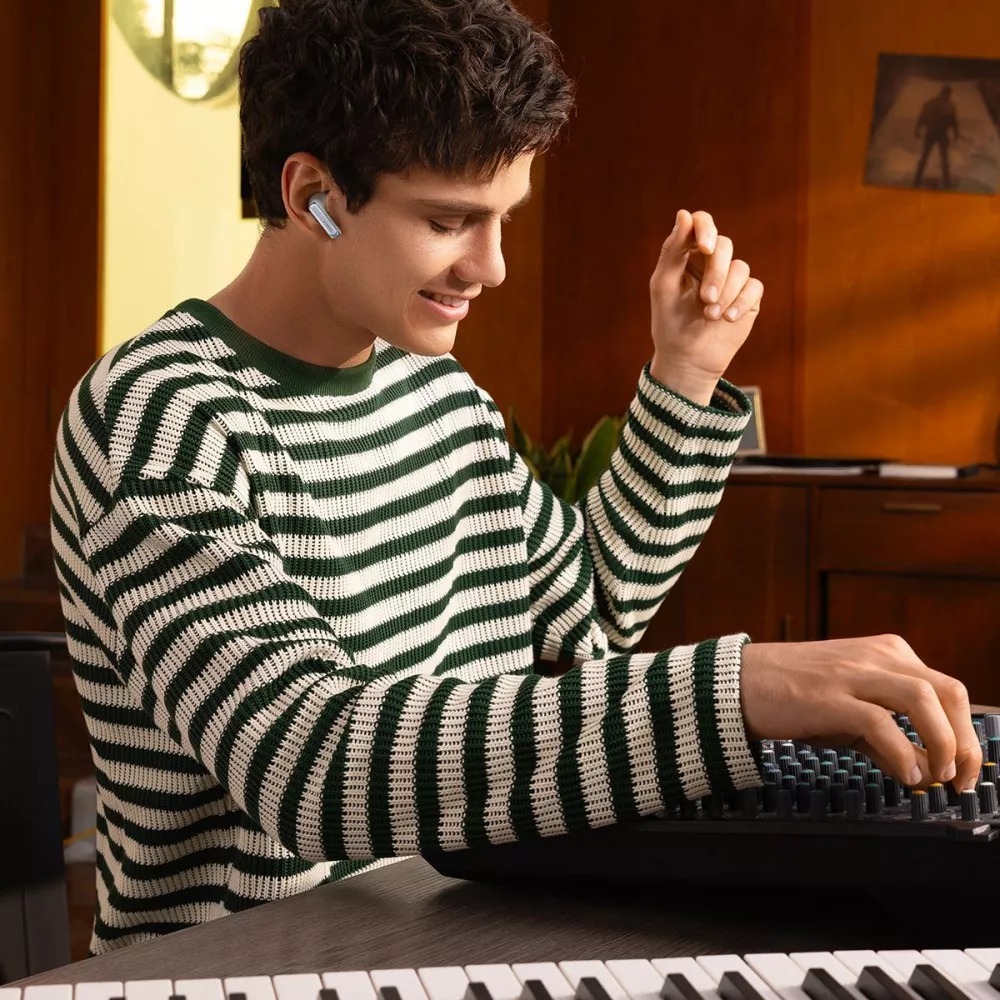 Ця модель в елегантному білому кольорі базується на технології Bluetooth 5.4 з дальністю до 10 м, що гарантує стабільне з'єднання без розривів. З частотним діапазоном 20 Гц–20 кГц, перетворюючи кожну композицію на іммерсивний досвід з теплим басовим акцентом, чистими середніми частотами та збалансованими високими, а також можливістю просторового аудіо для тривимірного звучання. Сумісна з iOS, Android та іншими Bluetooth-пристроями, гарнітура оснащена активним шумозаглушенням (ANC) для блокування зовнішнього шуму та режимом прозорості для природного сприйняття оточення, роблячи її незамінним інструментом для фокуса в шумних середовищах чи релаксу під час перельотів.