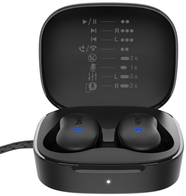 Одна з ключових переваг моделі — підтримка Multipoint-підключення до двох пристроїв одночасно. Це означає, що смартфон і ноутбук можуть бути під'єднані паралельно, і перемикатися між ними не потрібно вручну. Загальний ресурс акумулятора складає 26 годин: 6 годин активного прослуховування та ще 20 годин у зарядному кейсі. Сам футляр є найкомпактнішим у лінійці Belkin і оснащений карабіном для кріплення до рюкзака або ремінця.