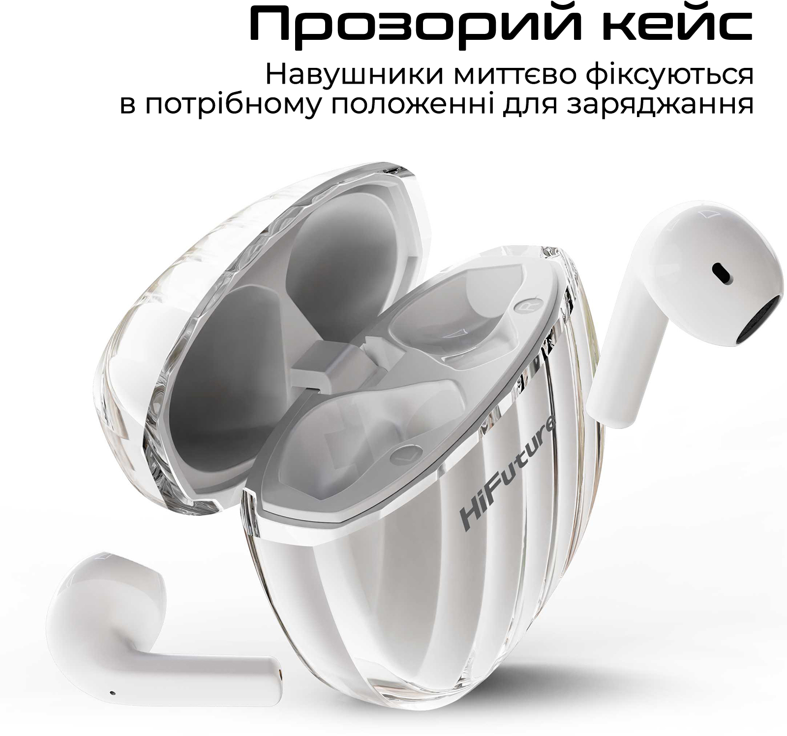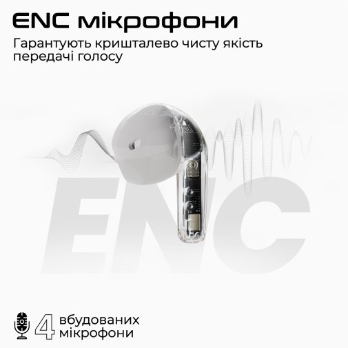 • Прозорий кейс-аккумулятор: З легкістю поміститься в кишені. Завдяки магнітам, навушники миттєво та надійно фіксуються в потрібному положенні для заряджання.