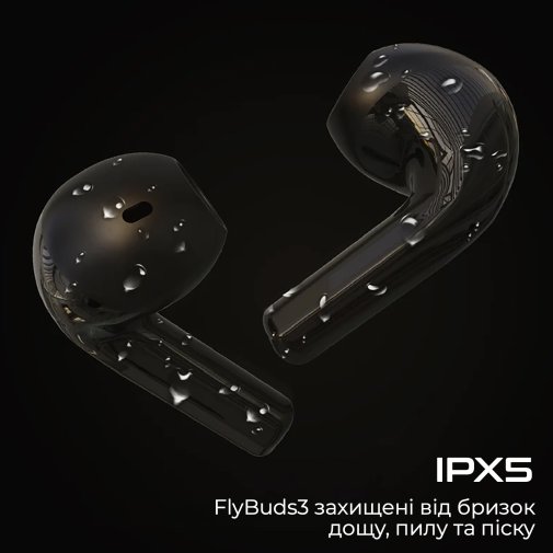 • Захист за стандартом IPX5: Завдяки спеціальній конструкції FlyBuds3 захищені від бризок, дощу, пилу та піску, а тому ідеально підходять для використання в будь-яку погоду. Повністю занурювати у воду не рекомендується