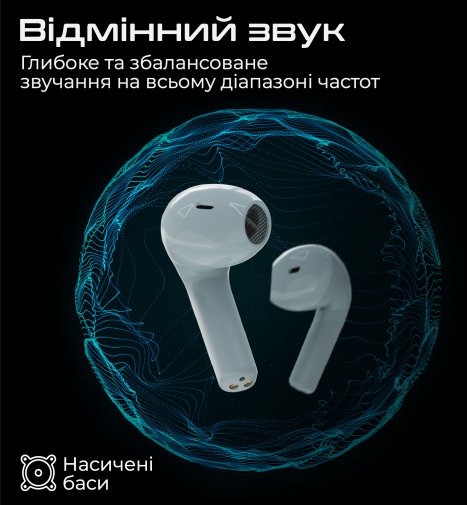 Шумоізоляція: НіТип навушників: ВкладишіПризначення навушників: Для смартфонаВиконання навушників: TWS (повністю бездротові)