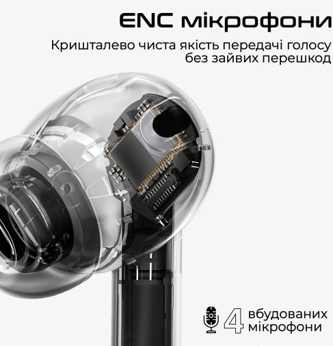 2 основних HD мікрофони захоплюють голос, а 2 додаткові вловлюють шуми та заглушують їх, роблячи якість розмов кришталево чистою.