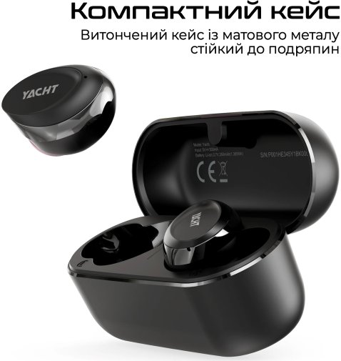 Yacht будуть програвати музику 5 годин, а за допомогою кейса ти зможеш їх підзарядити до 3 разів.