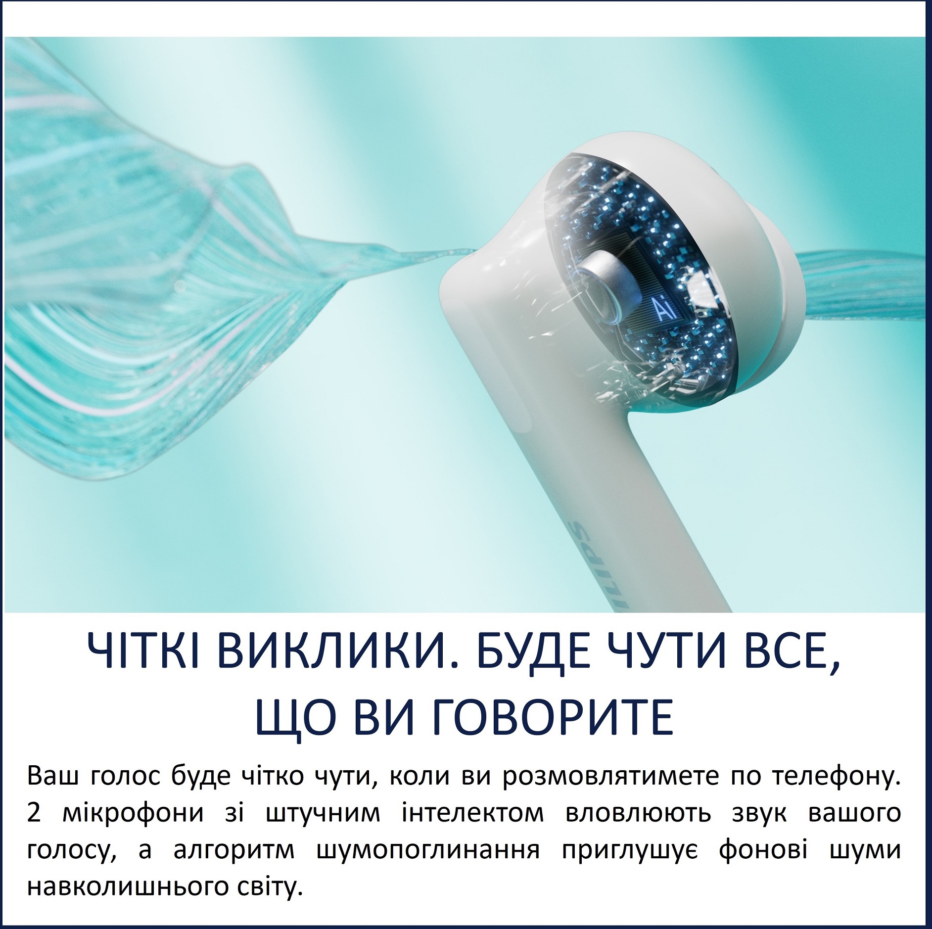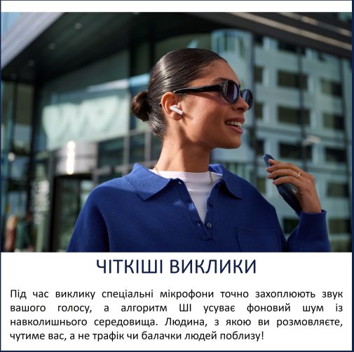 Під час телефонних розмов ваш голос звучить чітко та розбірливо завдяки двом мікрофонам зі штучним інтелектом, які вловлюють мовлення й мінімізують фонові шуми. Це забезпечує впевнене спілкування навіть у людних місцях.