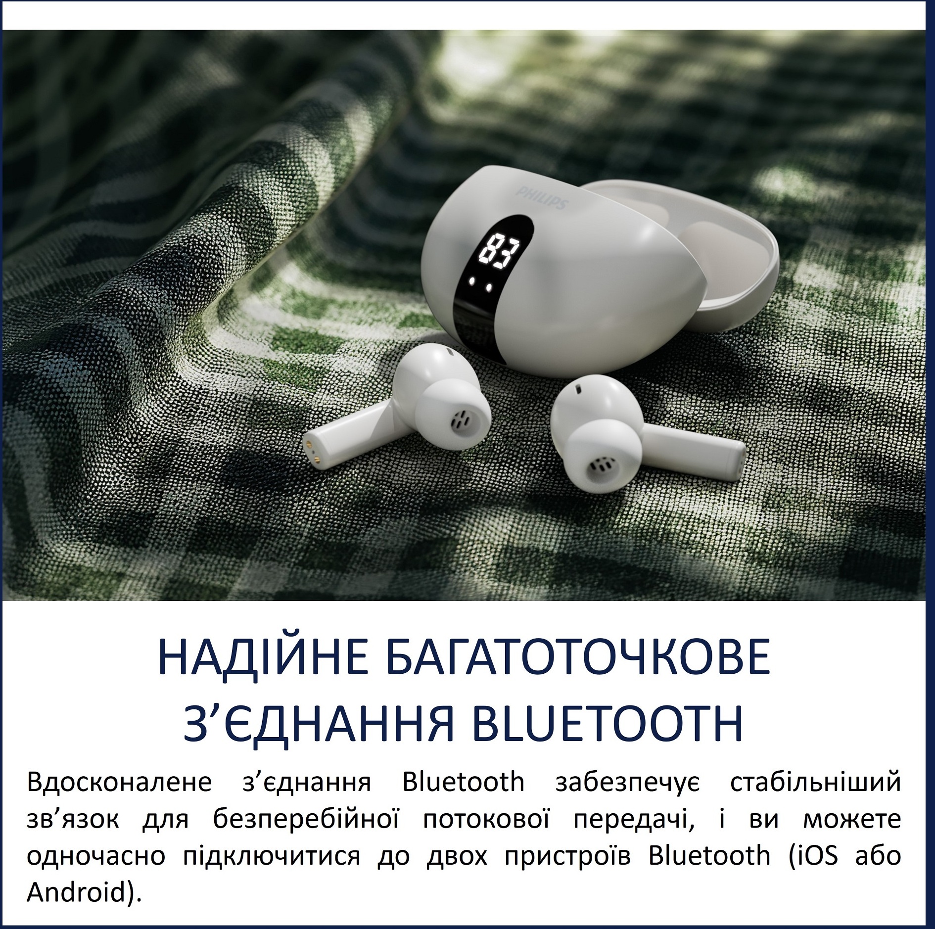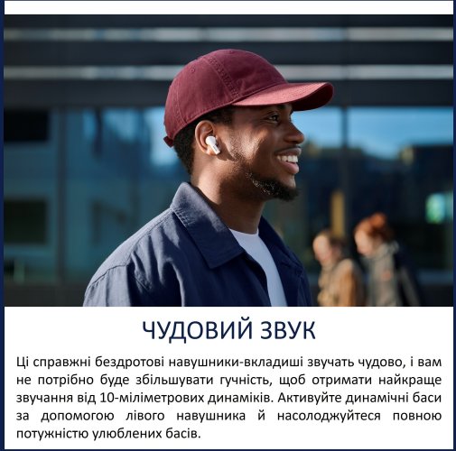 Philips TAT2520WT/00 — це поєднання компактності, якісного звуку з динамічними басами, ефективного шумопоглинання та зручного керування, що робить їх універсальним вибором для щоденного використання.