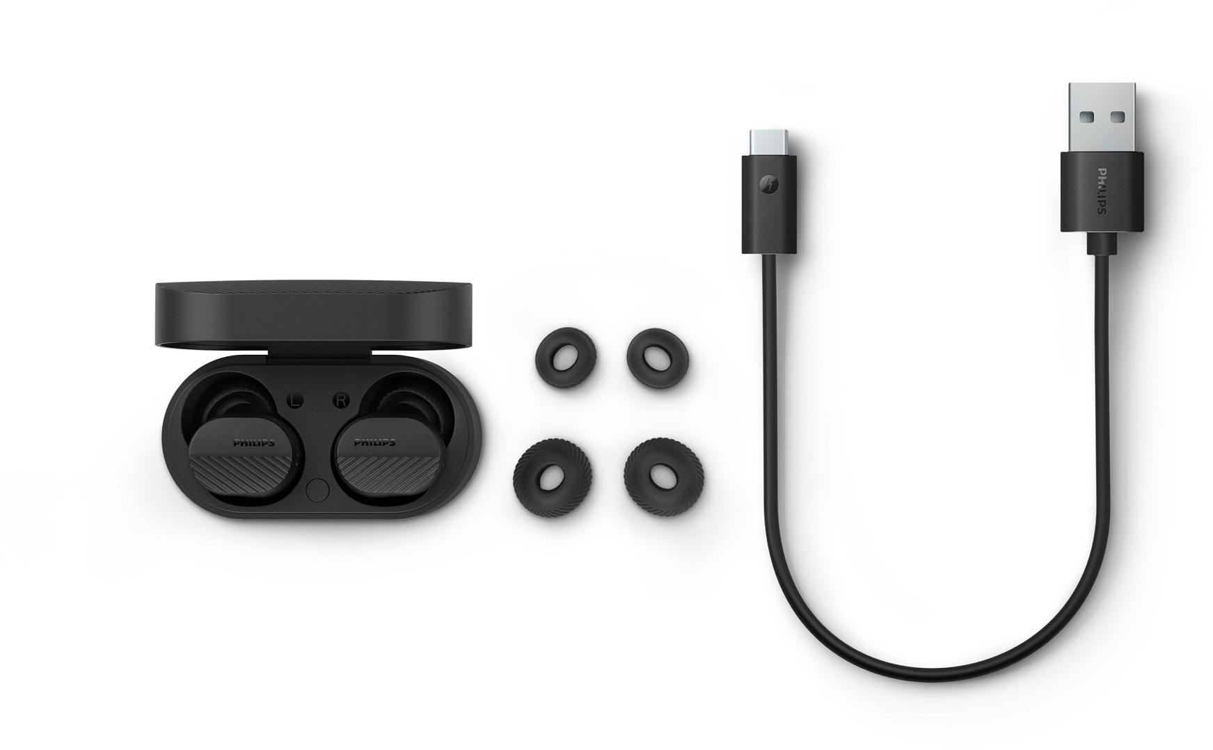 Навушники надійно фіксуються у вусі завдяки текстурним силіконовим наконечникам, не випадають під час руху. Клас захисту IPX5 робить їх стійкими до дощу, зливи та поту — ідеально для тренувань чи прогулянок у будь-яку погоду. Сенсорне керування зручно та гнучко налаштовується через застосунок Philips Headphones, де можна персоналізувати шумопоглинання, прозорість режиму та оновлювати ПЗ.