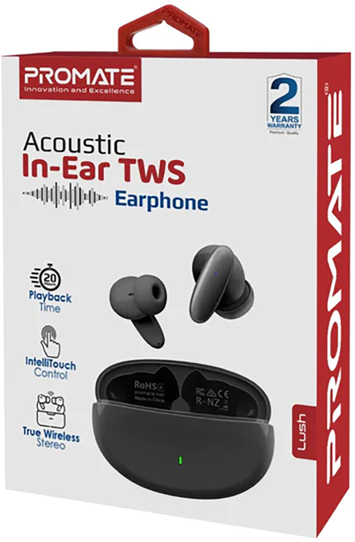 Вакуумні TWS навушники Lush від Promate із соковитим басовим звучанням та чутливим мікрофоном дозволяють насолоджуватися музикою та розмовами. А завдяки компактному футляру та значній автономності стануть відмінними компаньйонами протягом дня.