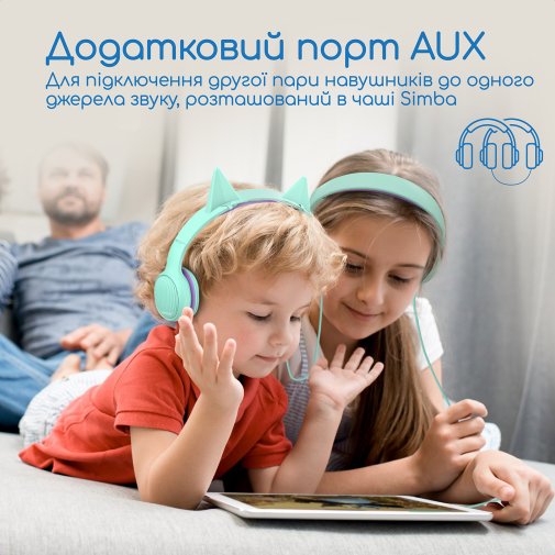 Знімні котячі вушка створюють неповторний візуальний ефект і яскраво виділяють Simba на фоні “навушників для дорослих”.