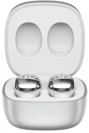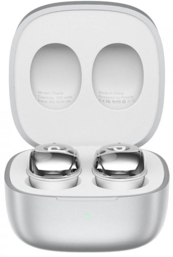 Корпус навушників виконаний із міцного пластику ABS, а загальна вага комплекту складає лише 38 г — їх майже не відчуваєш ні у вухах, ні в кишені. Ергономічна форма забезпечує щільне та комфортне прилягання, яке не дає навушникам випадати навіть під час активного руху. Мінімалістичний зарядний кейс розміром 48×48×30 мм легко поміщається в будь-яку сумку чи кишеню джинсів.