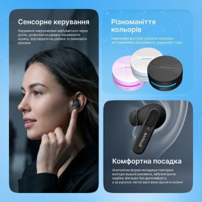 За звук відповідають динамічні драйвери діаметром 13 мм із діапазоном частот 20 Гц–20 кГц та опором 32 Ом — вони відтворюють насичений, деталізований звук із глибокими басами. Гібридна система активного шумозаглушення ANC ефективно зменшує навколишні шуми, дозволяючи зосередитися на музиці або розмові. Технологія ENC забезпечує чистий голос під час дзвінків навіть у галасливому середовищі. Режим прозорості дозволяє залишатися в контакті з навколишнім світом, коли це потрібно, а ігровий режим знижує затримку для синхронного звуку у відео та іграх.